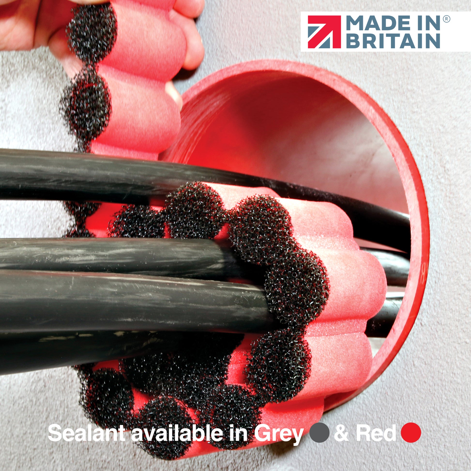 GreyStuff and RedStuff are solvent-free, single-component systems that do not damage cable sheaths or stain duct surfaces.