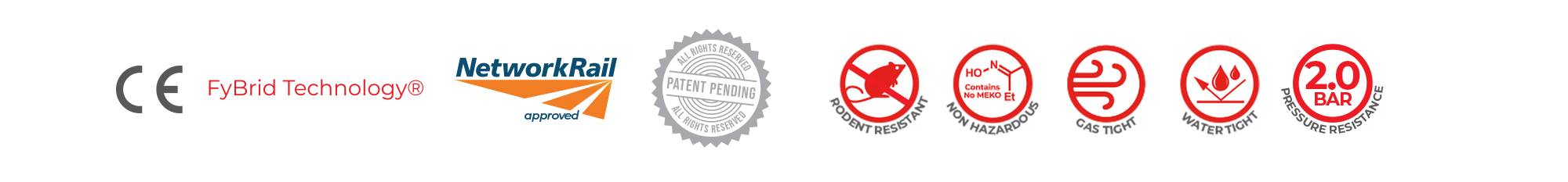 The system is combined with our advanced FyBrid flexible intumescent sealing compounds – GreyStuff and RedStuff – which are zero-halogen, zero-MEKO, non-hazardous adhesives designed for maximum safety, durability, and long-term flexibility.