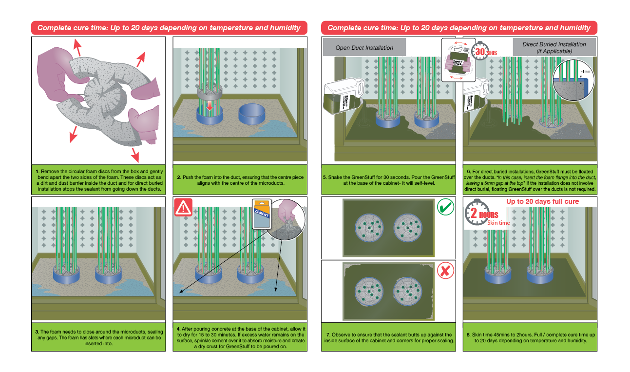 Type of Cabinet | Size (mm) | No. of Ducts | Volume of GreenStuff Required |